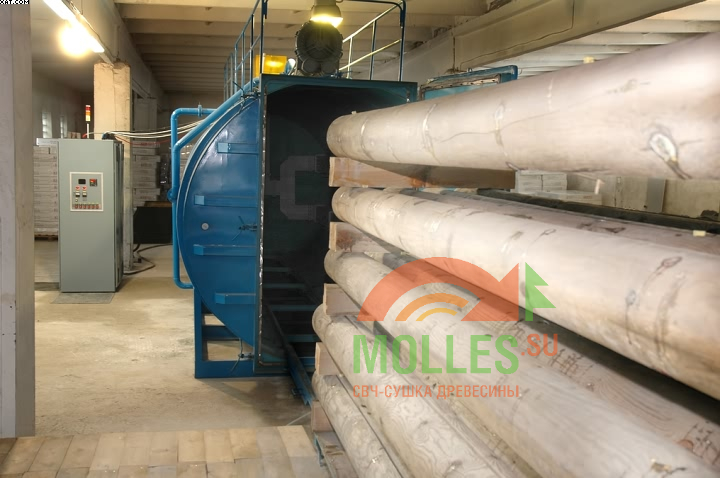 Сушка пиломатериалов производится в уникальной СВЧ камере. Технология позволяет производить сухой пиломатериал влажностью менее 20%. В процессе сушки происходит полная дезинсекция и стерилизация древесины.